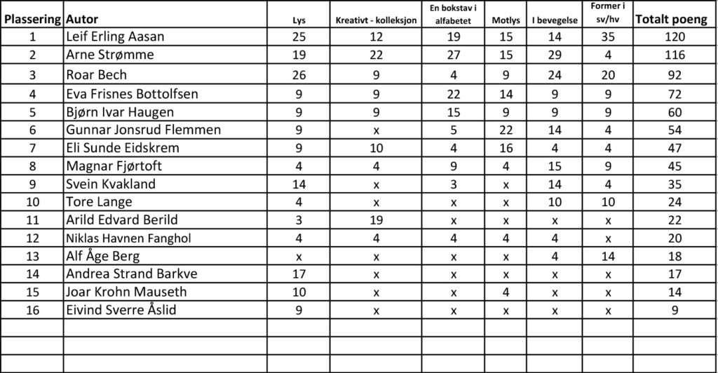 Det kom inn 44 bilder fra 11 fotografer denne runden. Juryert av Kvinnherad fotoklubb.